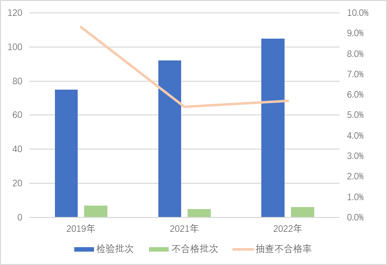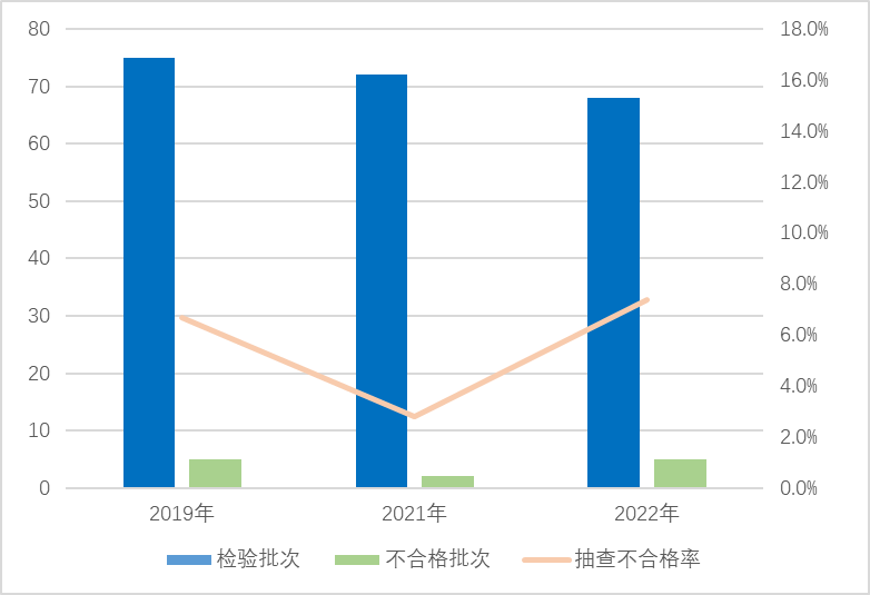 圖5 危險(xiǎn)化學(xué)品包裝物產(chǎn)品近3年國家監(jiān)督抽查情況