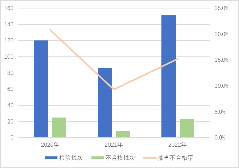 圖4 安全帽產(chǎn)品近3次國家監(jiān)督抽查情況
