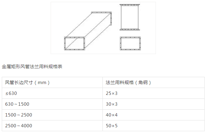 3、金屬矩形風(fēng)管邊長>630mm,保溫風(fēng)管邊長>800mm時(shí),且管段長度大于1250mm或低壓風(fēng)管單邊平面積大于1.2平方米、中、高壓風(fēng)管大于1.0平方米,均應(yīng)有加固措施。