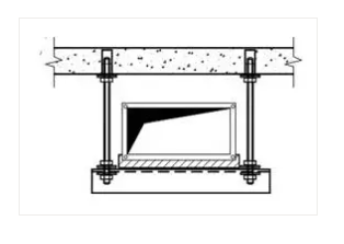 (2)支吊架的固定采用以下幾種方法:①膨脹螺栓法。本方法適用于規(guī)格較小的風(fēng)管支吊架的固定。本工程支吊架固定大多數(shù)采用此法,通過在樓板、梁柱上打膨脹螺栓固定支吊架。②焊接法。本方法適用于風(fēng)管規(guī)格大,使用膨脹螺栓固定不能滿足強(qiáng)度時(shí),采用預(yù)埋件焊接固定支吊架。支架固定形式見下圖。