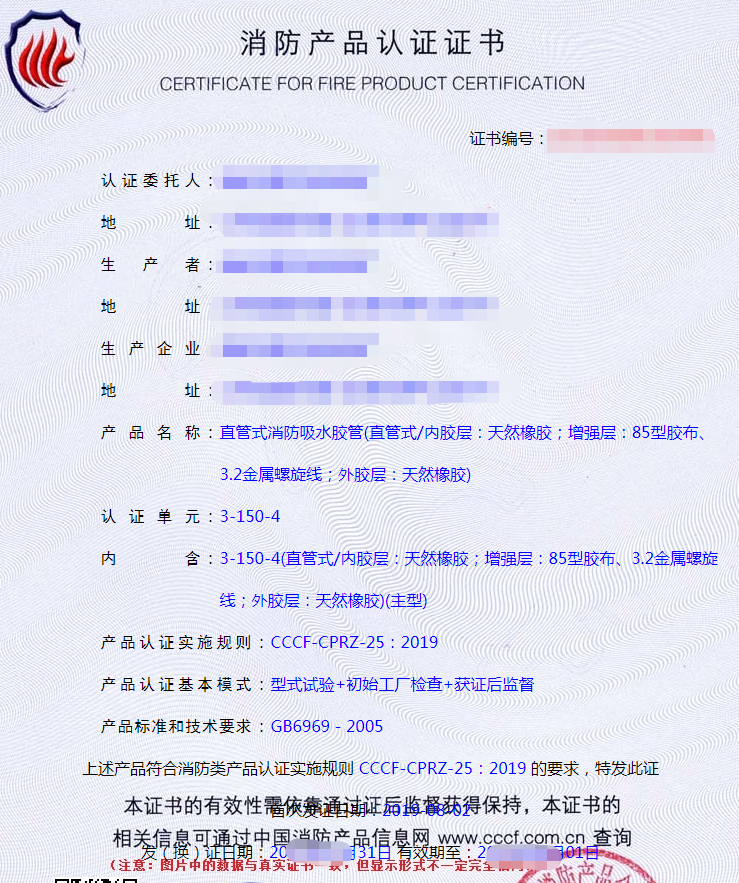 消防吸水膠管認(rèn)證檢驗要求